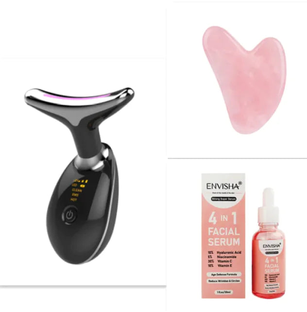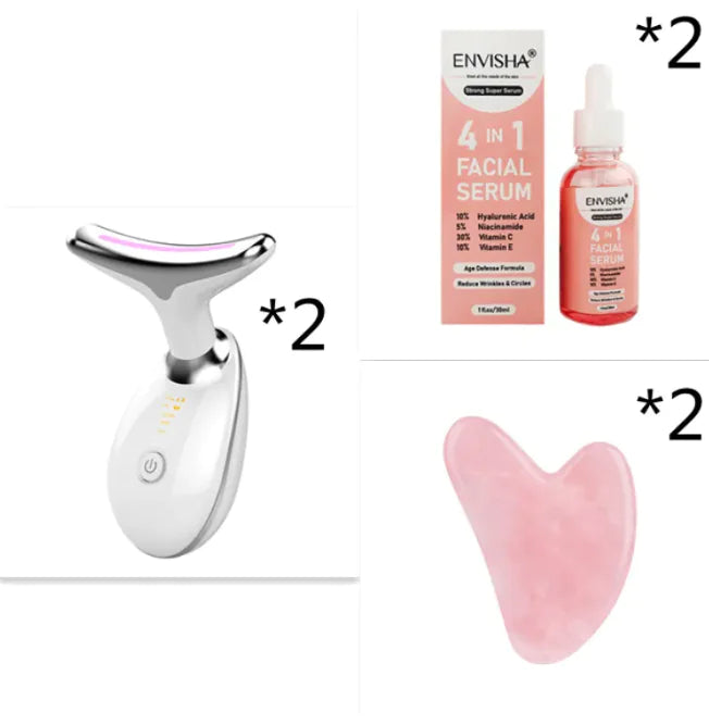 High-tech EMS thermal neck and face massager designed to lift, tighten, and rejuvenate your skin. Using microcurrent technology, LED photon therapy, and gentle heat, this device helps reduce wrinkles, improve elasticity, and enhance circulation for a more youthful, sculpted appearance. The ergonomic design fits comfortably on the neck and face, delivering professional-grade skincare treatments from the comfort of your home. Suitable for all skin types, this non-invasive anti-aging solution is perfect for women looking to achieve a firmer, smoother, and more radiant complexion.