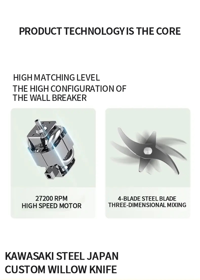 Equipped with a high-speed motor, this juicer ensures that your fruits and vegetables are blended in seconds, delivering nutrient-rich juices without the noise. Its innovative wall-breaking technology guarantees a smooth texture, making every sip delightful!