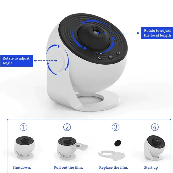 Featuring a 360° rotating design, this projector casts a stunning display of stars, planets, and a vibrant starry sky across your walls and ceiling. Perfect for kids’ bedrooms, romantic evenings, parties or special celebrations, this projector creates a dreamy and calming ambiance. Compact and easy to use, it serves as both a night light and a decorative element. Bring the magic of the cosmos to your space and let the celestial charm captivate everyone.